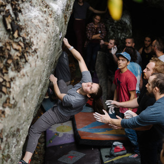 This beautiful comp that requires skin tougher than most insects exoskeletons has been happening for 25 years, pretty hard to believe. In the roughly 10 years that I've been attending the comp it seems like the main conversation always turns to the weather and how good it will be for climbing, this year was no exception. There were whispers of it falling below 60 degrees and as we all woke up that morning and made our way up the hill it looked like it was going to happen, but there was a caveat, we ended up sitting in a cloud pretty much the whole day...