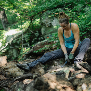 We're almost to the top, so close in fact that a few of us wandered around and checked out the boulders as we were finishing up working for the day. The rough cut is done and probably only about 100 more feet of trail cutting to connect to the boulders. After that we'll just need some finishing touches like Sara's precision step laying to make this trail ready for Fall. It has been amazing to see all of this coming together! Each day we worked we got a little closer to the top and got to know the people working around us a little more. Hoping next year brings another project just as fun and just as rewarding.